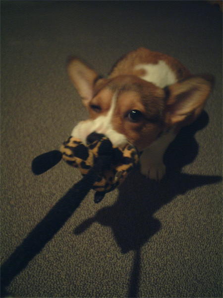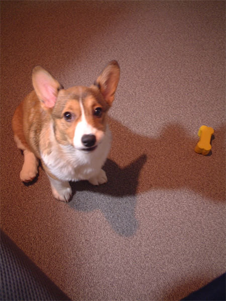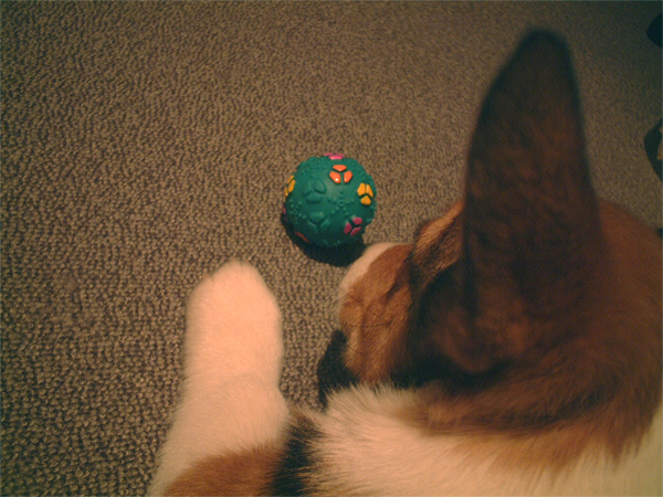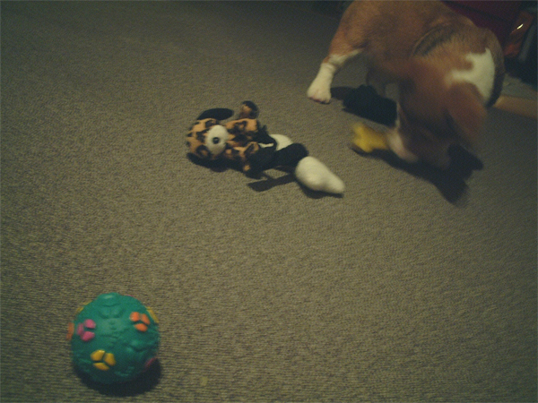 これの応用で、今日はおもちゃを投げて、持ってきたら