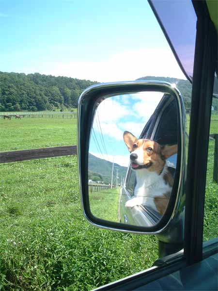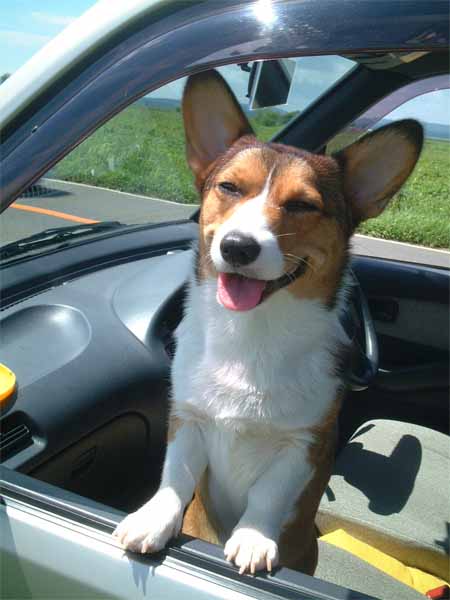 助手席に相方がワンコ、楽しいドライブだね。