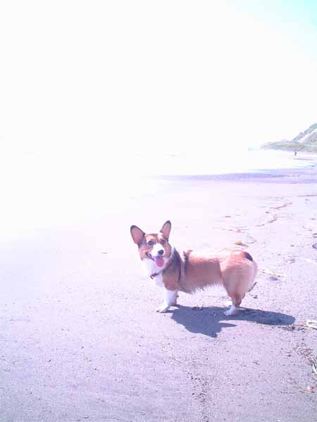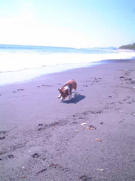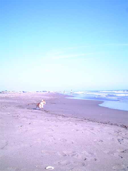 広い砂浜と、うち寄せる波が嬉しくて、飛び跳ねていました。